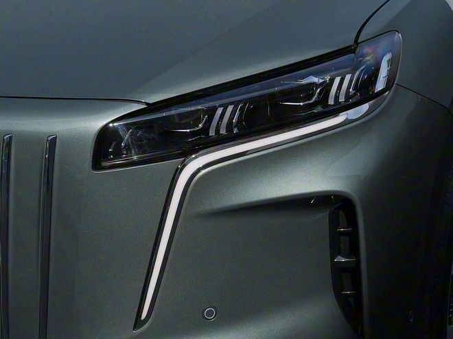 红旗HS6 PHEV外观造型大气典雅,极具东方气质,高山飞瀑式进气格栅采用封闭式设计,气势十足又兼具新能源车对降低风阻的需求。大灯狭长并带有镀铬装饰,搭配车头红旗LOGO,营造出一种不怒自威的气势感。