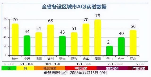 值得一提的是,本周四后半段起,浙江逐渐迎来了秋高气爽的好天气,不过天气静稳,雾和霾开始作祟。