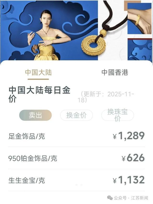 受此影响,国内品牌金饰价格也随之下调。查询发现,今天周生生金饰价格为1289元/克,较前一日下调16元/克;老庙黄金为1276元/克,较昨日同期下跌13元/克;周大福调整为1288元/克,较昨日下调17元/克。
