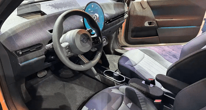 MINI行业首创的OLED圆屏新增三种Paul Smith专属背景,在个性化模式下呈现数字化交互体验。车辆解锁时,地面投射设计师手写体“Hello”灯光迎宾提示,迎宾踏板印有“Every day is a new beginning”座右铭。驾驶位地垫隐藏手绘兔子图案,作为设计彩蛋。