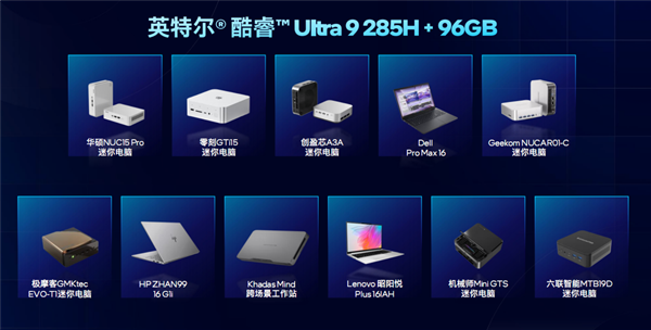 现场展示的首批产品,包括:华硕NUC15 Pro、零刻GTi15、创盈芯A3A、极摩客EVO-IT、机械师MiniGTS、六联MTB19D、Geekom NUCAR01-C包括戴尔Pro Max 16、惠普战99 16 Gli、联想昭阳悦Plus 16IAH等等。