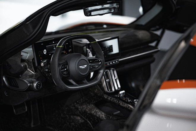 Valhalla的座舱设计延续了阿斯顿·马丁终极跑车Valkyrie中融入的F1®赛车设计元素,极简的布局让驾驶者和乘客都能全身心投入到驾乘体验中。同时,新车还采用直立式液晶仪表盘和中控屏幕,在赛道模式下,该车屏幕可显示线性转速表和换挡指示灯;在公路驾驶模式下,可全屏显示导航地图等。