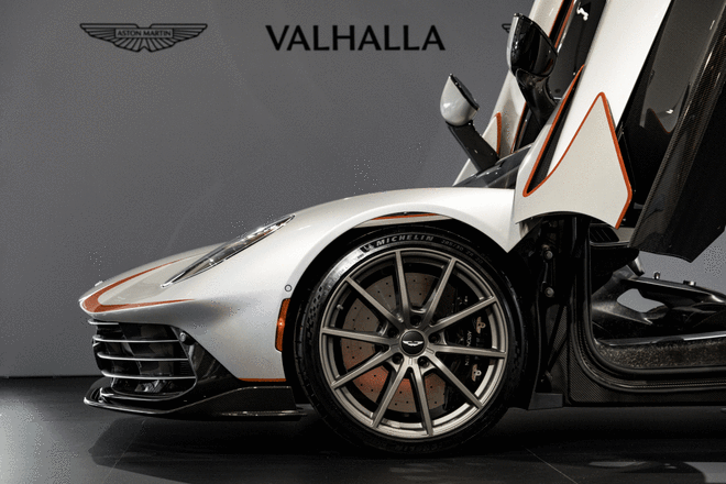 动力上,新车搭载由4.0升双涡轮增压V8发动机和前双电机、后单电机组成的插电式混动系统,系统综合功率1079马力,综合扭矩1100牛·米,匹配全新8速双离合变速箱(DCT)并集成电机和灵敏的液压驱动电子后限滑差速器(E-diff),百公里加速仅2.5秒,电子限速下的最高车速为350公里/小时。当然,凭借出色的动力系统,Valhalla还创下了众多“第一”的成就:阿斯顿·马丁有史以来第一款量产中置引擎超级跑车、第一款插电混动车型、第一款配备专用电动汽车续航能力的量产车。不仅如此,Valhalla还是第一款搭载定制版平面曲轴4.0升双涡轮增压V8发动机(阿斯顿·马丁有史以来性能最强悍的V8发动机)的车型。同时,它也是第一款采用阿斯顿·马丁全新8速双离合变速箱(DCT)并集成电机和灵敏的液压驱动电子后限滑差速器(E-diff)的车型。
