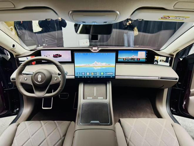享界S9T的座舱采用中正对称美学设计,配备领航屏、全新中控大屏、副驾娱乐屏、液晶仪表盘和两侧智能电子外后视镜屏,打造出多屏互联的智能交互体验。