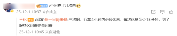 评论中,他还透露,此次行程共充了3次电,智驾占比50%左右。