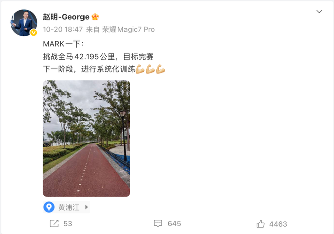 荣耀前CEO赵明完赛上海马拉松,勇敢尝试人生的重要性