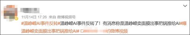 近日,社交平台上出现“温峥嵘团队把假货和AI联系起来了”“温峥嵘AI事件反转”“温峥嵘疑似翻车了”“曝温峥嵘卖面膜出事把锅推给AI”等热搜词条,引起网友热议。