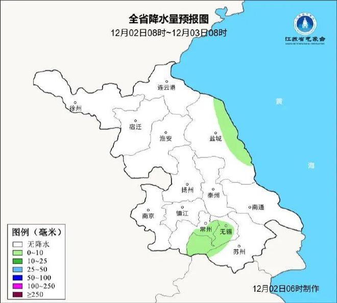 12月2日08时至12月3日08时,江淮之间东部和苏南地区多云到阴,局部有时有小雨,其他地区多云。今天最高温度:淮北北部地区8~9℃,沿江和苏南地区14~15℃,其他地区12℃左右;明晨最低温度:淮北地区-4~-5℃,有冰冻,本省东南部地区3~4℃,其他地区0℃左右。全省偏北风4-5级阵风6级。