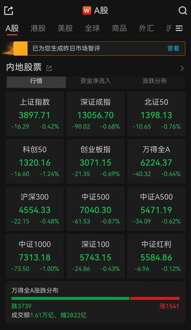 两市成交额1.61万亿,全市超3700只个股下跌。