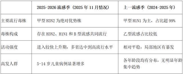今年流感的核心变化是流行毒株变了!上一季主导的甲型H1N1退居次位,甲型H3N2成为本季主流毒株。由于H3N2近两年没有大规模流行,人群普遍缺乏针对性免疫屏障,感染风险明显上升。要注意的是,即便H3N2亚型名称没变,病毒表面抗原也会持续发生微小变异,每一季流行的毒株都和前一年略有不同,对免疫系统来说堪称“似曾相识的新敌人”。