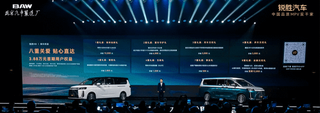 12月6日报道近日,北京汽车制造厂全新MPV——锐胜M8正式上市,新车共推出8款车型,市场指导价15.98-22.98万元,锁单抢先价14.98-21.98万元,政策叠加优惠价12.98-19.98万元。新车拥有L2级智驾辅助功能以及具备8155骁龙芯片的智能座舱,并提供纯电、增程版等多种动力供选择。