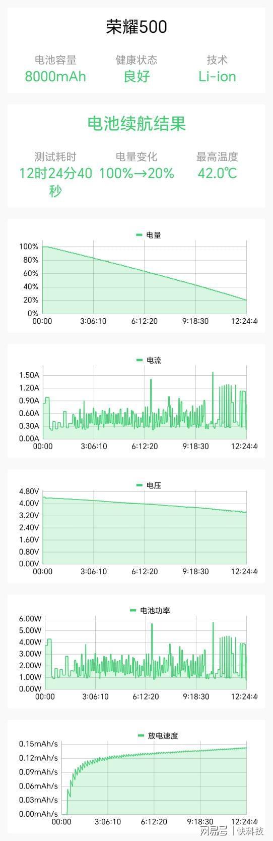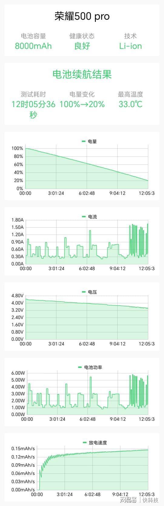 在我们电池狗狗的测试中,荣耀500系列从100~20%续航都坚持了12小时以上。理论满电续航可达15小时。确实拥有“两天一充”的能力。