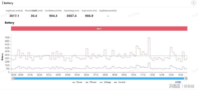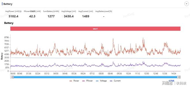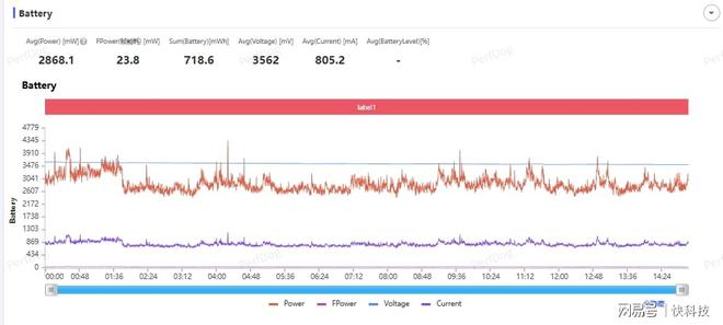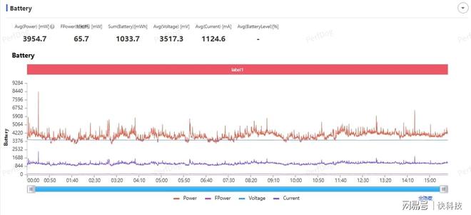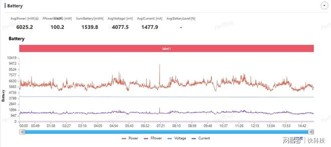 荣耀500 Pro的平均功耗优化得非常好,仅为3.9W,每帧能耗65.7mW