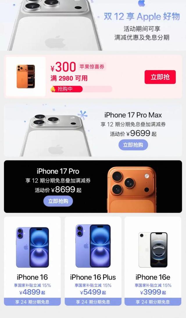 iPhone 17 Pro系列限时降价300元,包括iPhone 17 Pro及iPhone 17 Pro Max机型!