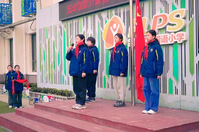 “起来,不愿做奴隶的人们……”当雄壮的国歌奏响,六二中队的旗手们昂首挺胸,将五星红旗冉冉升起。全体师生肃立注目,嘹亮的歌声回荡在校园上空,每一个音符都承载着对祖国的无限崇敬与热爱,为这场爱国主义教育活动奠定了庄重的基调。