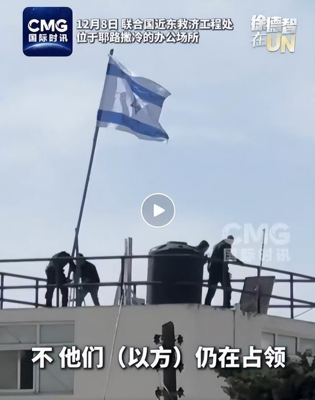 CCTV国际时讯消息,当地时间12月8日,以色列警方强行进入联合国近东巴勒斯坦难民救济和工程处(UNRWA)设在耶路撒冷的办事处,还在其办公楼上升起了以色列国旗。