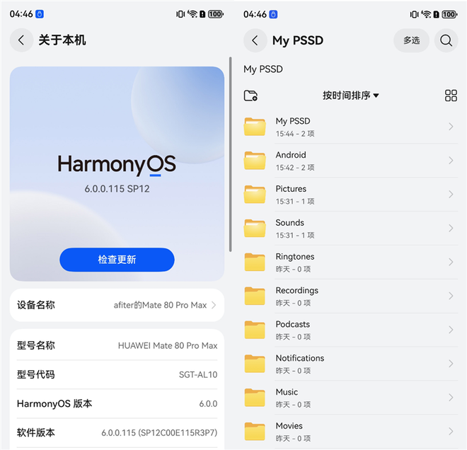就是华为Mate 80 Pro Max,搭载HarmonyOS 6.0,致态灵·潮流版移动固态硬盘可以完美识别。