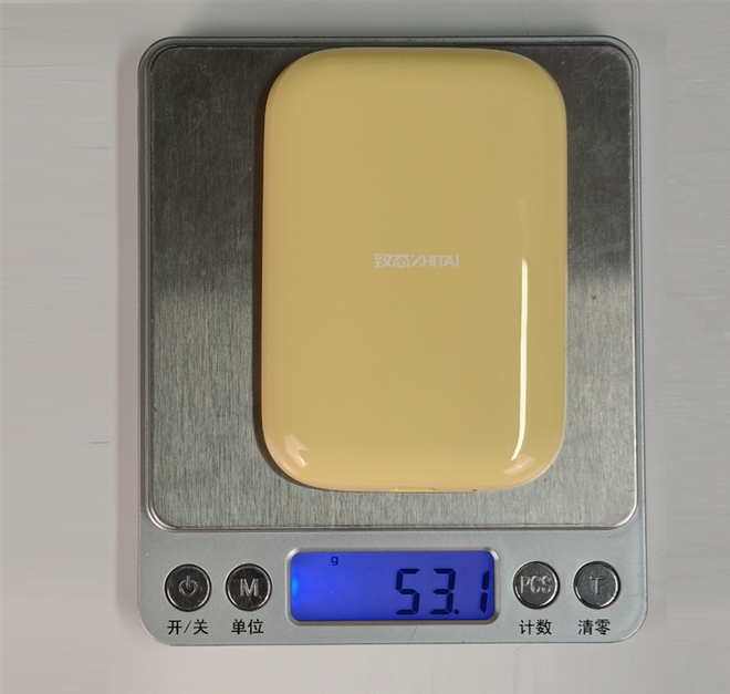 实测重量只有53.1g,官方标称52g左右,在误差范围内。
