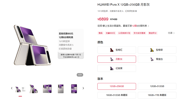 根据官网显示,目前华为Pura X到手价是6899元起。