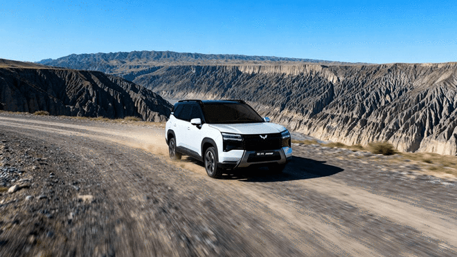 在外观设计上,五菱星光560有着硬朗的线条设计,前脸也是蜂窝状设计,并搭配壮实的前保险杠设计,而两侧LED光源以双横线设计更像时尚化的点缀。另据悉,围绕新车动力的不同,其前脸设计也会有一些差异,比如燃油版与插混版采用的就是黑色网状格栅,搭配棱角分明的前保险杠,而纯电版则以封闭式前脸+贯穿式灯带凸显新能源身份。