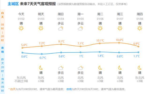 明天白天气温虽然会小幅回升,但假期结束后,冷空气还会源源不断补充,甚至整个一月上旬冷空气活动都会比较频繁。放眼未来一周,杭州气温将维持在较常年同期偏低的状态,最高气温只能在10℃上下艰难徘徊,最低气温也将维持在-1~4℃之间。