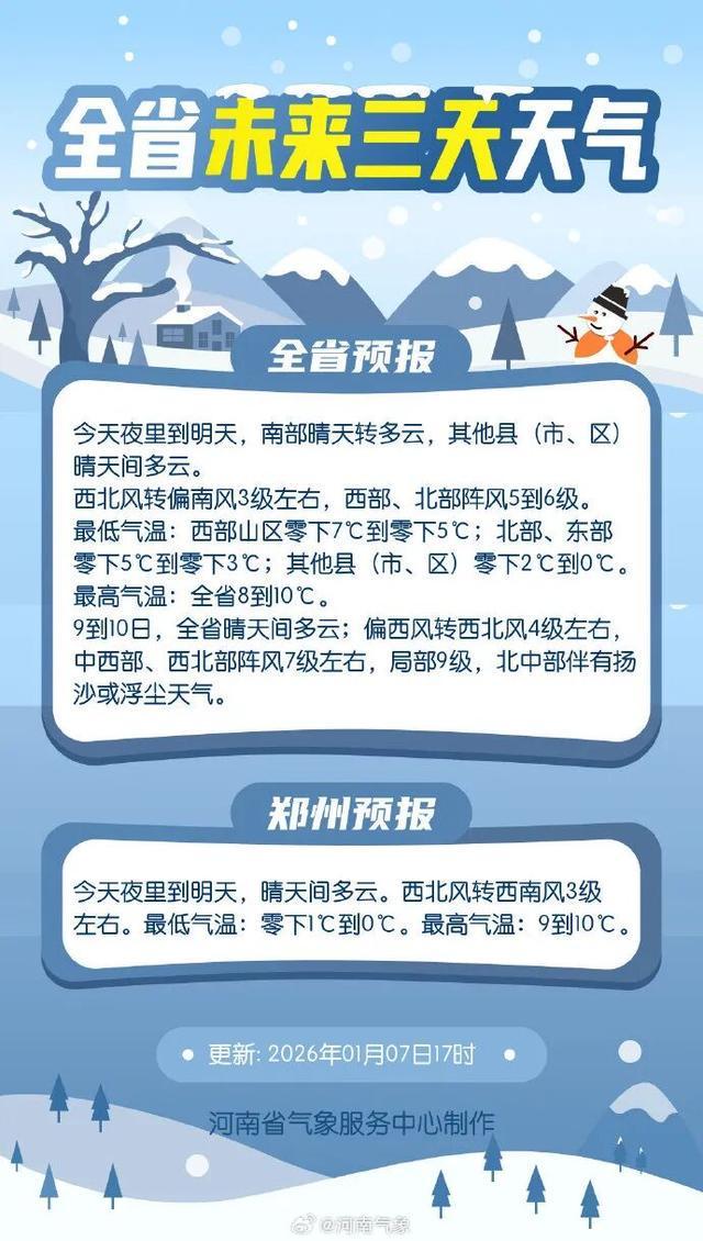 来源:河南省气象台2026年1月7日12时预报