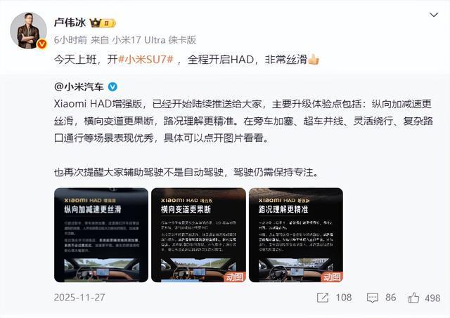 近日,有市场消息称小米集团合伙人、总裁卢伟冰辞职,引发部分网友关注。微博词条数据显示,“小米卢伟冰辞职”话题已有60.6万阅读量。值得注意的是,卢伟冰在微博认证的小米职务并未发生变化。1月12日,卢伟冰还转发了小米汽车动态,并配文称“今天上班”,用上班动态辟谣离职传闻。