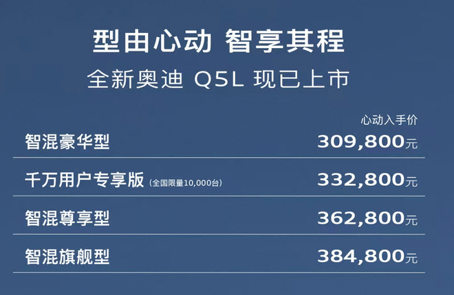 全新奥迪Q5L全系智混搭载华为辅助驾驶系统正式上市,售价30.98万起