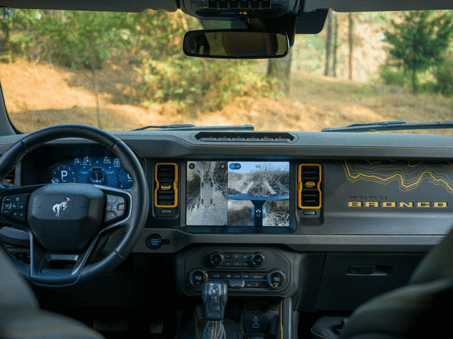 为应对野外复杂多变的地形,540°越野透明底盘系统依托福特自研核心算法,即使行驶在连续颠簸路段,全景画面依然保持流畅稳定,配合深度集成的语音控制功能,驾驶者只需说出指令即可切换视图,让驾驶者能更专注应对复杂路段。而在城市通勤中,基于2D、3D、单视及轮毂视角组成的多维视觉矩阵,环境视野范围较前代提升20%,前后全屏视角优化10%。面对城市狭窄路况,轮毂视角可随时调用,清晰显示轮胎轨迹,避免与路沿、障碍物发生剐蹭,轻松应对窄路会车与停车入位。