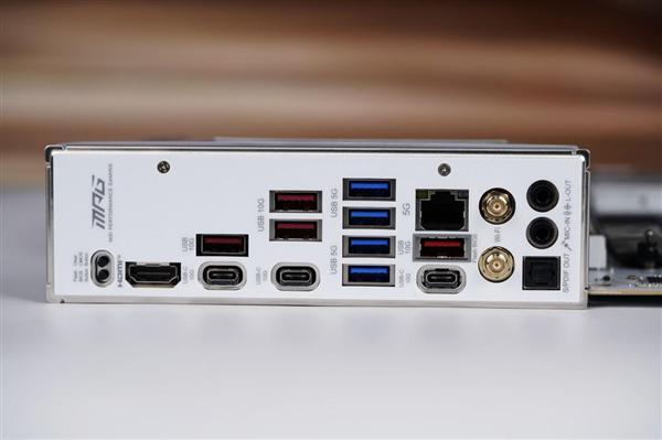 背部I/O接口丰富,包括USB 20Gbps Type-C、多个USB 10Gbps与5Gbps接口,充分满足外设扩展需求。