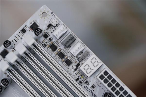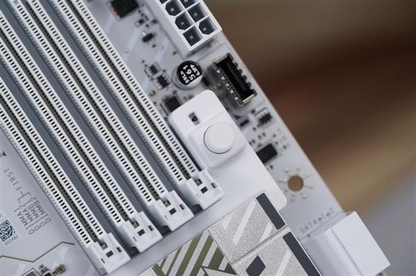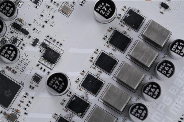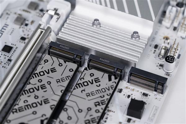 该主板采用银白色主题设计,搭配扩展型VRM散热装甲与M.2冰霜铠甲,整体外观简洁利落,极具科技感。
