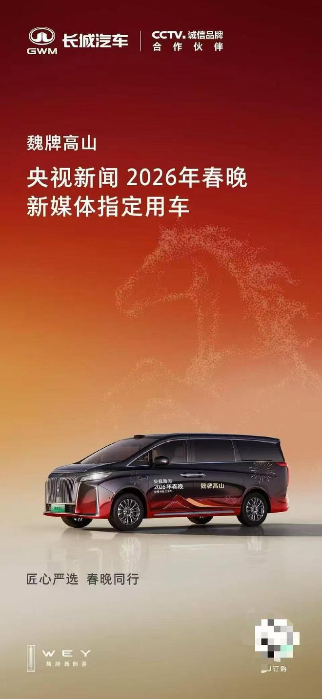 魏牌高山成为2026年春晚新媒体指定用车 访客 2026-02-04 15:03:22 53565 抢沙发 默认 2月4日,长城汽车宣布,魏牌高山成为2026年春晚新媒体指定用车。 标签: 高山 春晚 海报 阅读 QQ 分享 微博分享 微信分享 分享 上一篇谷歌Gemini屏幕自动化功能细节曝光,可代用户完成下单预约等任务 下一篇段永平再谈特斯拉:认可FSD好用,ModelY已成出行首选 谷歌Gemini屏幕自动化功能细节曝光,可代用户完成下单预约等任务上一篇 段永平再谈特斯拉:认可FSD好用,ModelY已成出行首选下一篇 相关推荐 高山春晚 抖音成为2026年总台新媒体《竖屏看春晚》独家合作伙伴 2026-02-03 宇树智元机器人公司出价过亿争夺2026年春晚赞助席位之战激烈展开 2025-12-10 魏牌高山7配备激光雷达和四驱系统上市,售价28.58万起 2025-10-16 魏牌高山7四驱电混版预售价公布,28.98万起,5门7座重磅来袭 2025-09-11 魏牌高山7正式亮相 9月10日开启预售 2025-08-30 FF全球总裁回应抄袭长城争议:不存在抄袭而是合作赋能 2025-08-03 魏牌全新高山亮相大湾区车展 标配激光雷达/Hi4电四驱 2025-06-02 魏牌全新高山家族售30.98万起 标配激光雷达+Hi4电四驱 2025-05-14 发表评论取消回复 快捷回复: 评论列表 (暂无评论,53565人围观)参与讨论 还没有评论,来说两句吧...