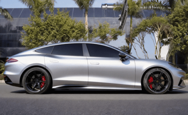 可以看到,新车采用顶级轿跑外观,以流畅的溜背车顶与紧凑上翘的车尾构成完美的视觉平衡。通过侧面造型来看,新车的轮廓营造出蓄势待发的动感。低矮的车身高度和宽轮距设定,进一步强化了车辆稳健的贴地姿态,即便静止也充满向前张力,也充满了向前的冲劲。