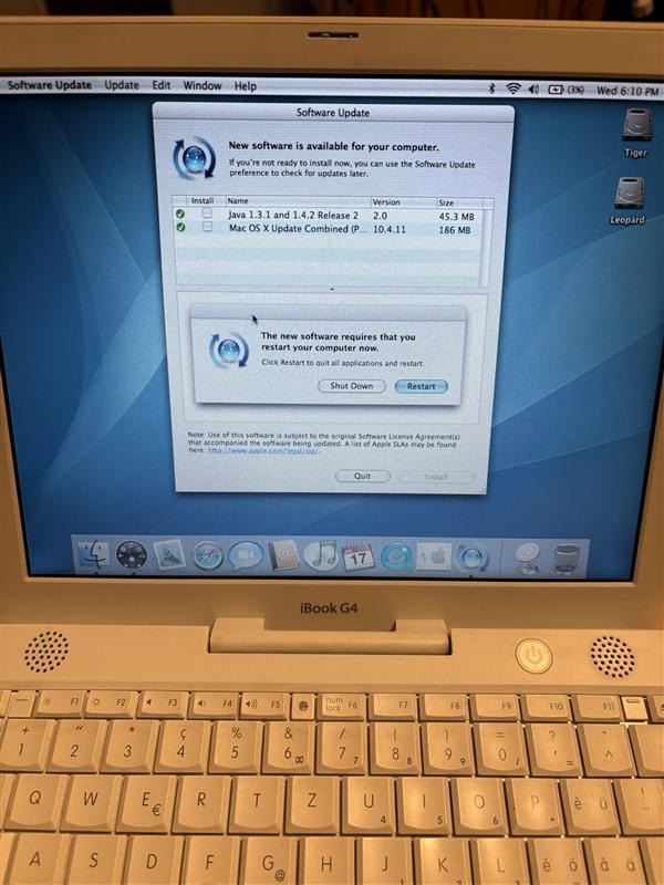 发帖人分享的画面显示,这台2003年末发布的iBook G4无需任何改装,即可连接现代Wi-Fi并下载系统补丁。但需说明的是,这些并非完整更新(iBook G4的安全支持2011年已结束),实为多年累积的旧版本补丁。