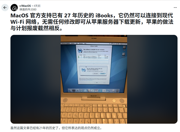21岁的老苹果笔记本开机连上Wi-Fi 竟然还能收到系统更新!网友:画面美到想舔