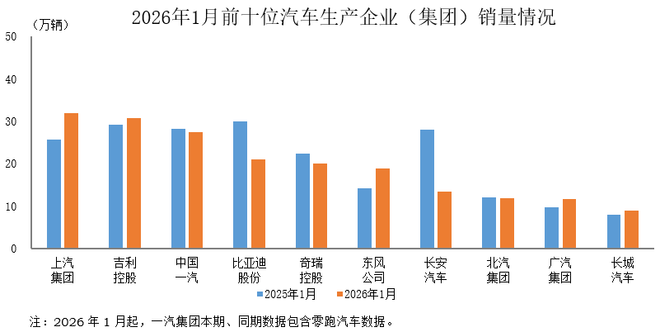 2月24日消息,据中国汽车工业协会统计分析,2026年1月,汽车销量排名前十位的企业(集团)共销售196.2万辆,占汽车销售总量的83.6%。