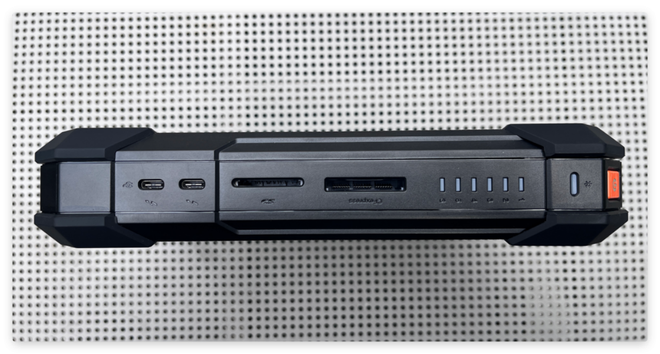 作为一款高性能便携式私有云,T6的接口配置十分强大。双雷电4接口、SD卡槽、CFe 插槽、USB‑A、Type-C、HDMI、万兆网口等一应俱全,满足相机、手机、电脑、显示器等多设备同时连接。高速接口带来更快的传输速度,无论是大量原图照片,还是4K视频,都能快速拷贝与备份。同时,它支持外接硬盘扩展容量,满足摄影爱好者、视频创作者的长期使用需求。在春节户外场景中,用户可以直接连接大屏播放家庭视频,也能快速整理素材,让数据处理不再受场景限制。