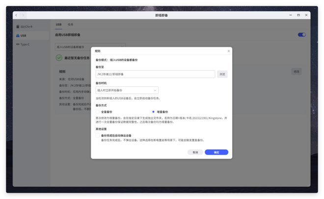 春节出行最刚需的功能,就是照片与视频的快速备份。T6支持即插即备功能,用户只需插入SD 卡、CFe卡、U盘或移动硬盘,设备就能自动识别并开始备份,备份开始与完成均有提示,操作简单易懂。它支持全量备份与增量备份,首次备份后,后续只同步新增文件,节省时间与存储空间。多人出游时,大家的存储卡可依次接入备份,互不干扰,让全家的新春记忆都能集中安全存放。