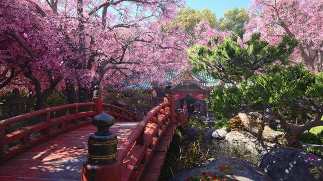 光线追踪技术加持下,全局光照和实时反射让场景质感翻倍:阳光透过树叶洒下斑驳的光影,水面倒映着城池的轮廓,夜晚的月光照亮潜行的道路,每一处细节都经得起细看。更绝的是动态风系统,所有植被都是靠流体模拟驱动的物理动画,刮风时草木摇曳、花瓣纷飞,甚至能看到风吹动角色的衣角,连鸟群都会随着风向改变飞行路线,整个世界都活了过来。