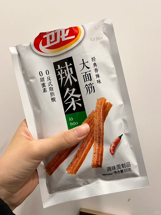 我也记不清啥时候开始,就对麻辣王子爱得不行。每次去超市肯定得拿两包才踏实。这辣条吃起来那叫一个香,我就好这口咸辣的老式辣条味,一点甜味没有,纯纯的麻麻辣辣,一口下去特别过瘾。它一大包里有 6小包,都是独立包装,平时在办公室摸鱼的时候来一包,追剧的时候吃也超棒。