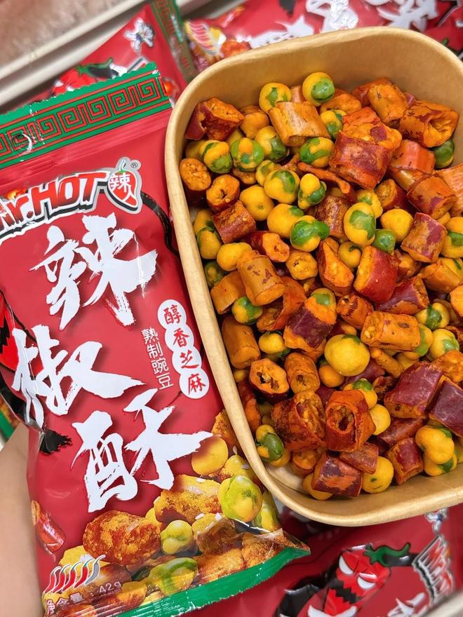 初春时节小风飕飕吹过,人就特别想吃点辣的,辣人辣椒酥就是我最近找到的一款宝藏零食。它的原料是内蒙望都椒配合酥脆大颗豌豆,内嵌白芝麻,一口咬下去先是香后是脆,辣味在嘴巴里肆意翻滚,融合豌豆的酥脆,层次分明、好吃到停不下来!在家追剧、朋友聚会、出门带上都特别合适!