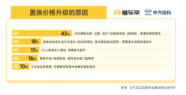 对于追求消费升级的用户而言,智能化配置与高端配置成为核心吸引力,占比达到43%。