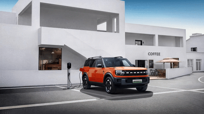 越野性能传承Bronco家族基因:承载式车身结构搭配前双叉臂 + 后五连杆独立悬架,接近角30°、离去角32°、最小离地间隙220mm,具备600mm涉水深度。
