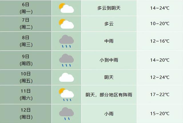 6日:全省阴天转多云,沿江江南南部有小雨。