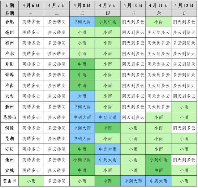 10日:全省阴天到多云。大别山区和沿江江南有小雨,部分地区中到大雨。