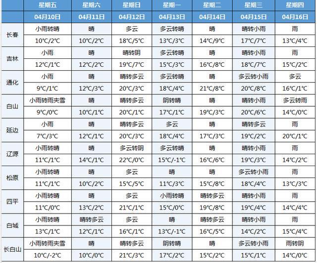 长春未来七天预报