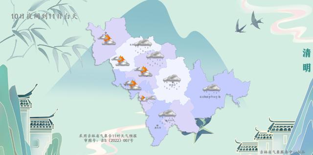 今天午后到明天白天,全省多云有时阴,有小雨或雨夹雪, 其中白城南部、松原南部部分地方有中雨。