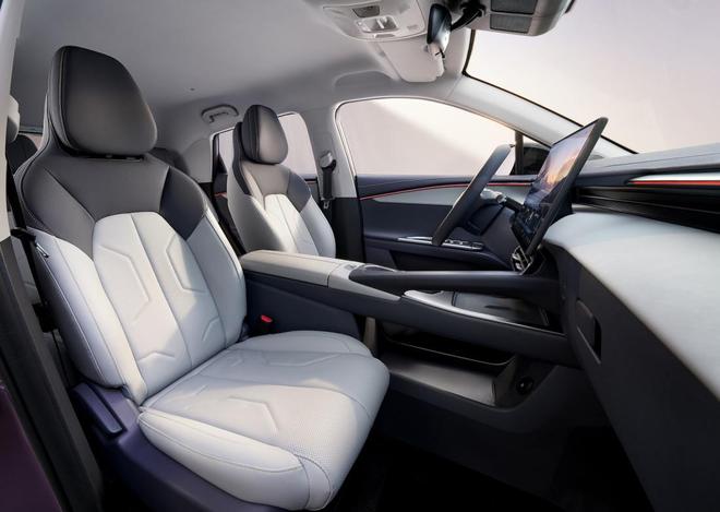 内饰方面,新车主打智简轻奢风格,配置了超感悬浮IP仪表台,由8.88英寸全液晶仪表与15.6英寸2K中控大屏组成双屏联动布局。此外,新车提供“紫定行”、“蓝波万”等5种潮流车色,并配备了17英寸旋风轮毂与红色卡钳 。
