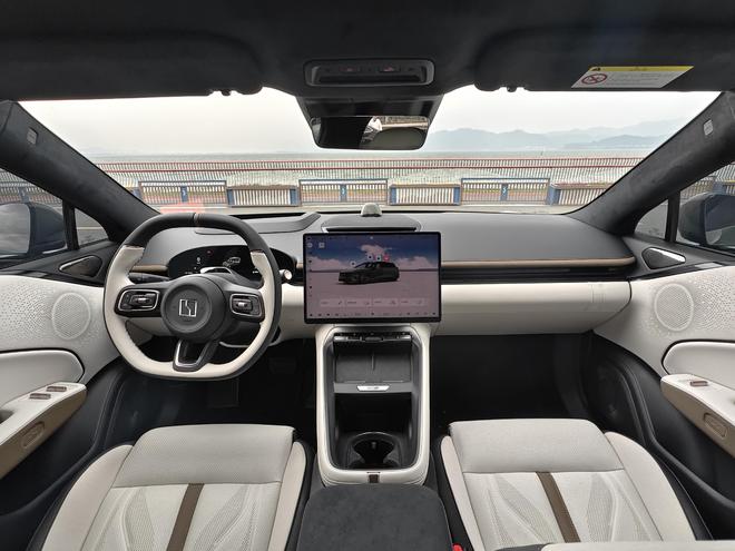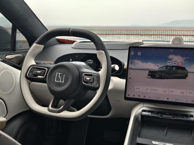 座舱内,中控屏由极氪007的电动转向改为固定,配合5.5英寸AR-HUD抬头显示与全液晶曲面仪表。 车机系统升级为ZEEKR OS AI,融入大模型技术,可识别15万条泛化车控指令,并提供30余项主动智能服务,如起步盲区检测提醒、前后卡车危险位置预警等。