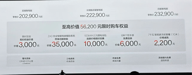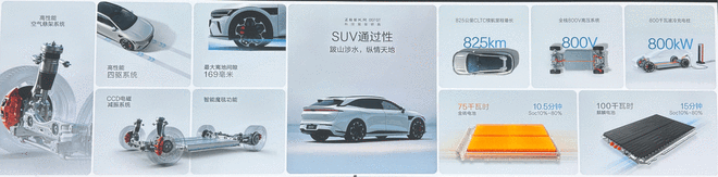 新车提供后驱标准续航、后驱长续航、四驱标准续航、四驱长续航四个版本,CLTC续航最高达825公里。